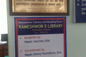 Nepal Journey is delighted to announce the establishment of an E-Library at Chetrapur Rameshwor Pustakalaya in Narayanghard, Chitwan, on October 3, 2016. We extend our sincere gratitude to our esteemed Chief Guest, President of NRNA Dr. Shesh Ghale, Nepal Journey advisor Som Sapkota, Nepal Library Foundation, Nepal Journey Coordinator Saraswoti Rijal, and Murali Prasad Gajurel.